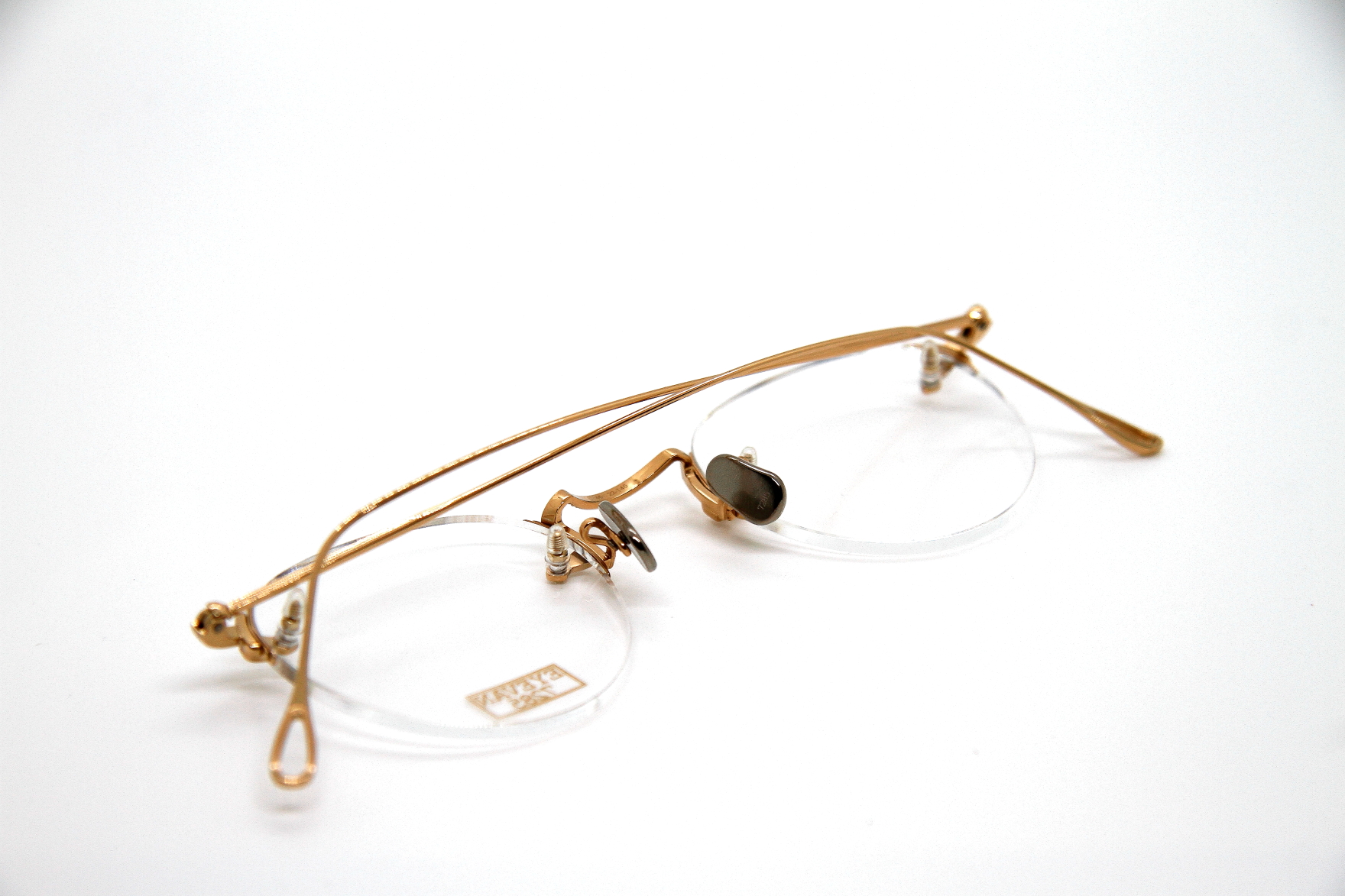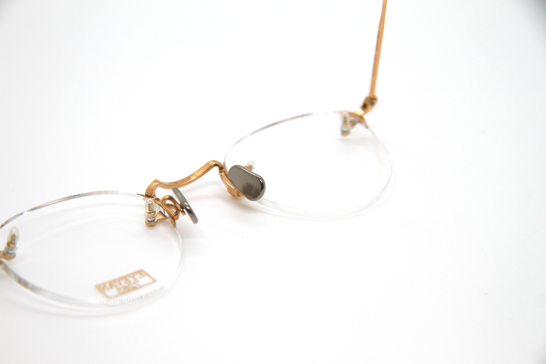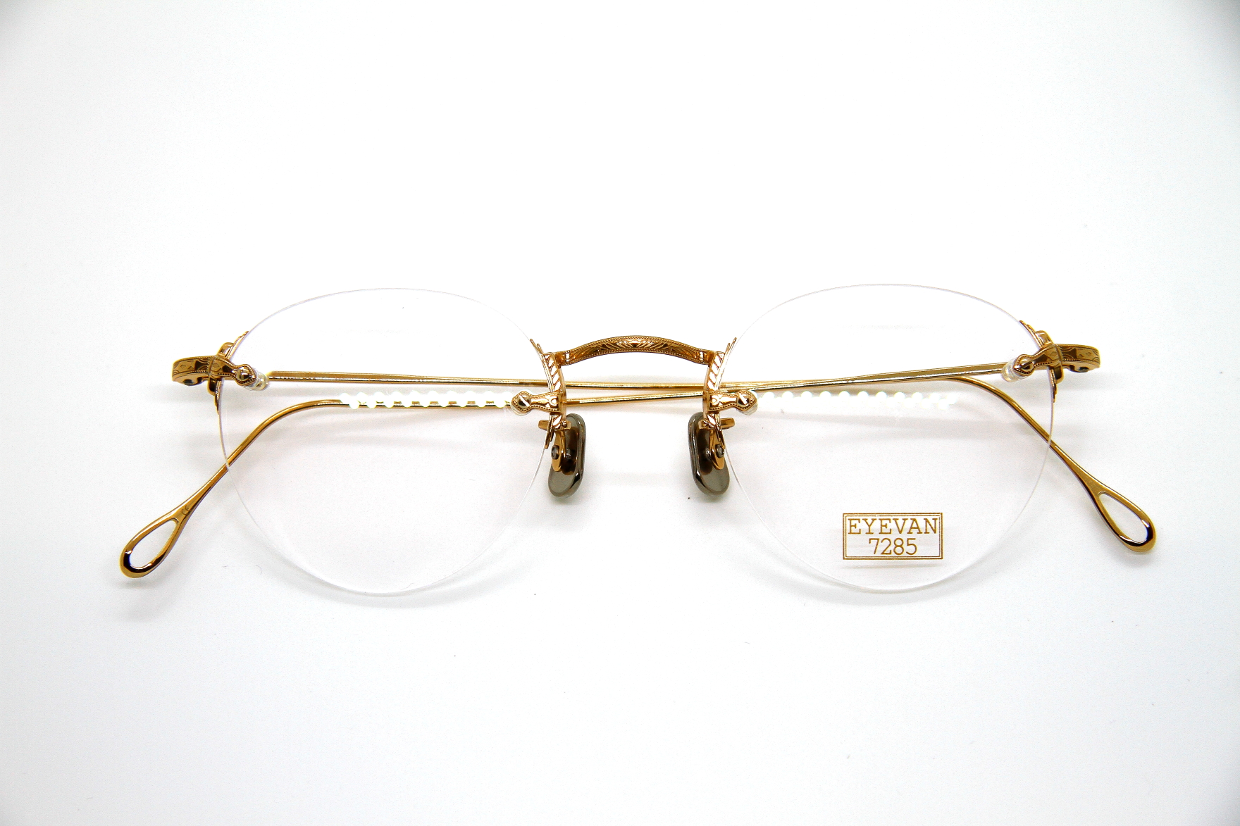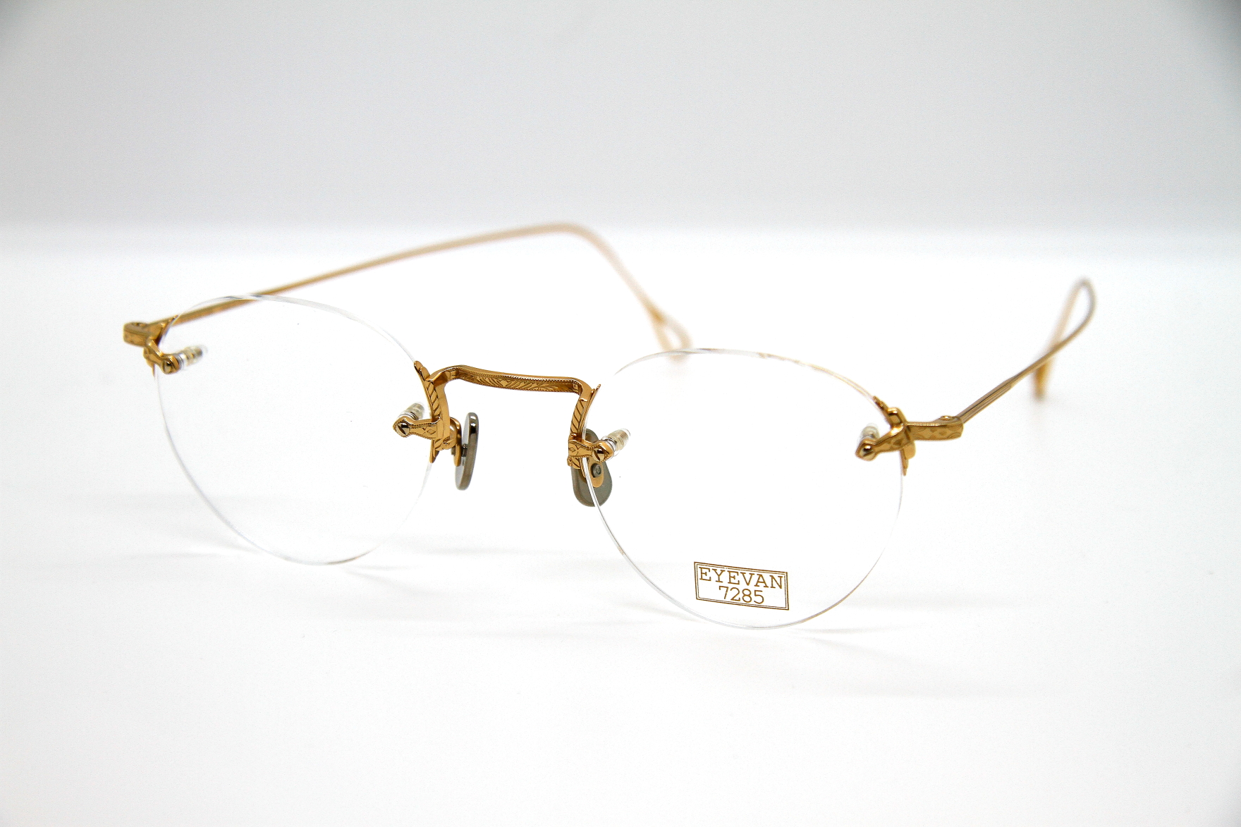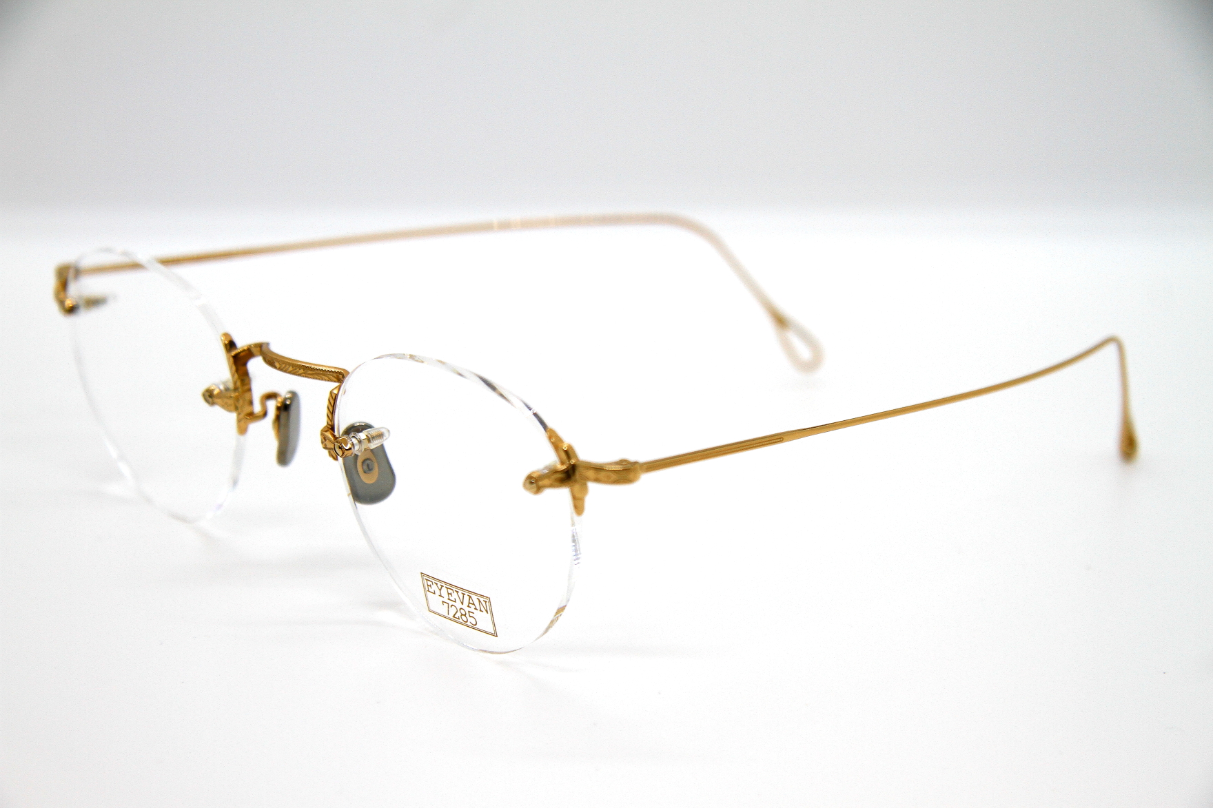 eyevan7285初となる2ポイントフレーム。 ブリッジやテンプルの装飾は勿論 レンズの止め方など、技術革新のある機能と デザインの融合がみられるパーツを盛り込み リムのないミニマルな3ピース構造ですが こだわりのあるフレーム。