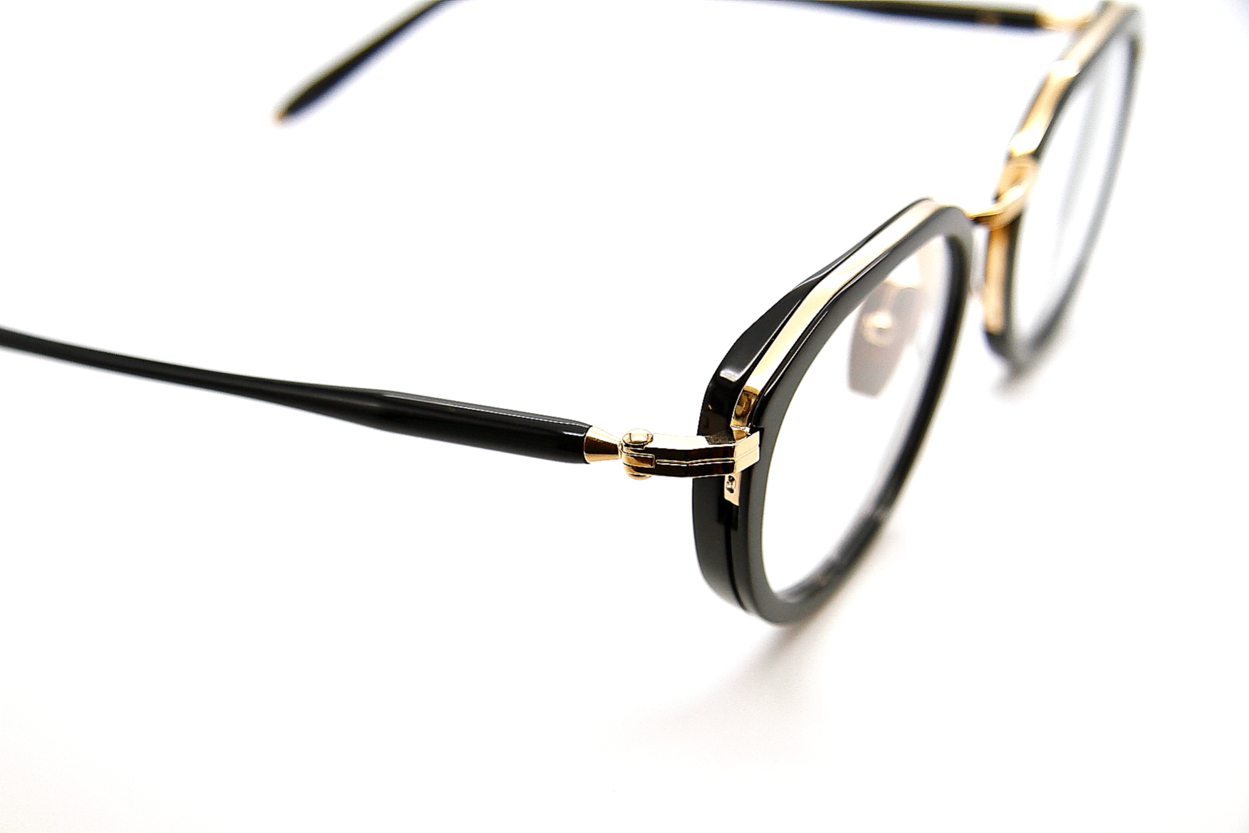 サイドからの見た目が美しい ボストンタイプのコンビネーションフレーム。 立体的なフード型のプラスチックフレームを メタルリムに合わせたテクニカルなフレームで ブリッジやテンプルのデザインも ラグジュアリーな雰囲気。