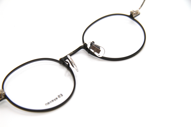 ラウンド型のメタルフレーム。 フロントには、軽量で強度性に優れた シートメタルを使用。Ⅼ字型の特殊形状で 顔を包み込むメタルテンプルは、 ズレにくさと軽い掛け心地感を実現。 日常使いしやすいフレーム。