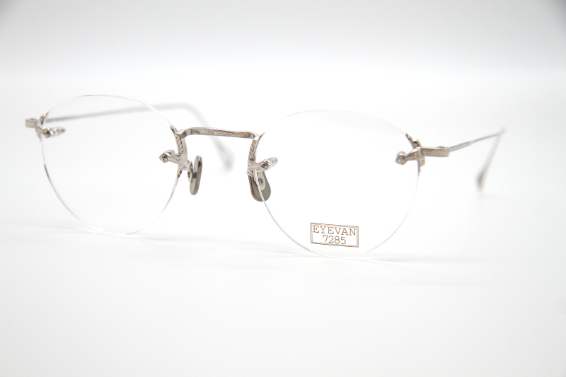 eyevan7285初となる2ポイントフレーム。 ブリッジやテンプルの装飾は勿論 レンズの止め方など、技術革新のある機能と デザインの融合がみられるパーツを盛り込み リムのないミニマルな3ピース構造ですが こだわりのあるフレーム。