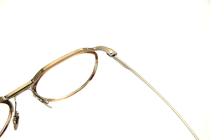 クラウンパント型のコンビネーションフレーム。 チタン製の細いリムに、ナイロン糸でアセテート製の リムを釣った、ネジを使わないコンビネーション構造。 非常に軽量でミニマルなデザインは DITAのデザイン性とモノ作りに対する探究心が伺える。