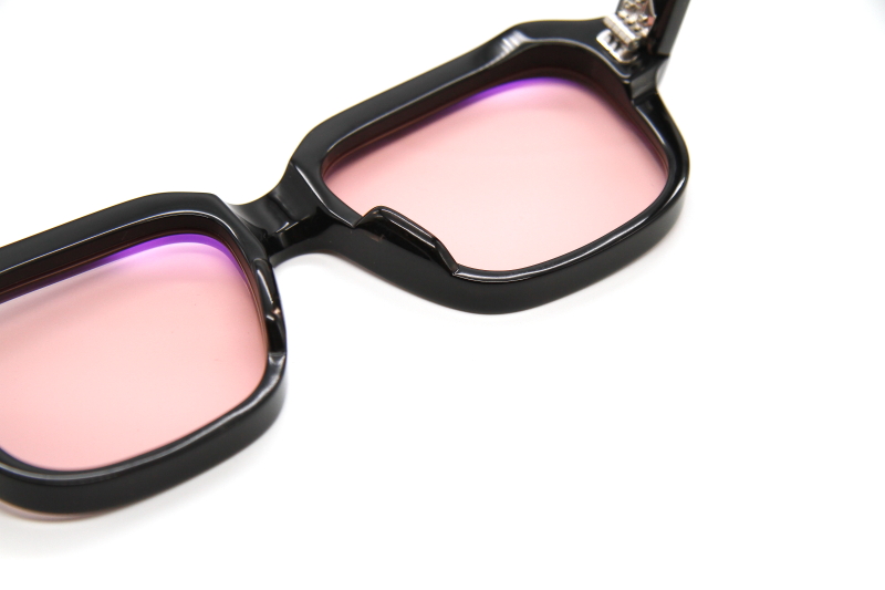 ブラックベースに大理石のような柄生地。 レンズは、ピンク系。