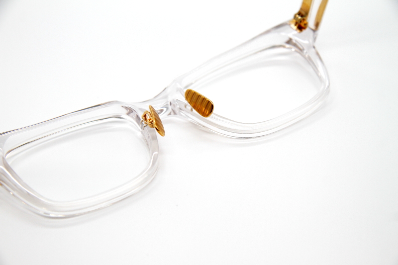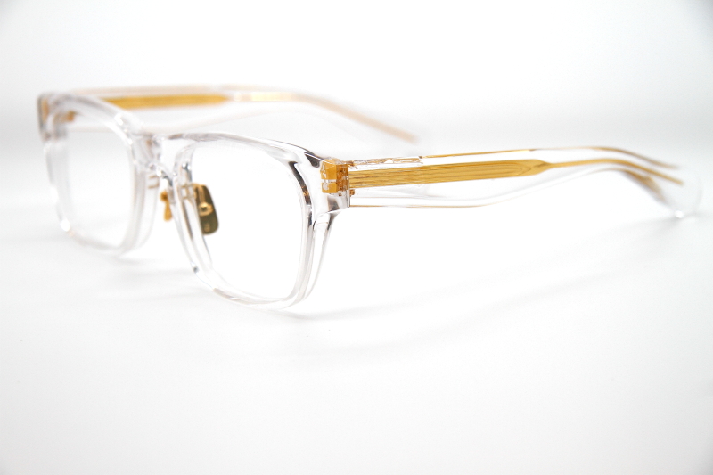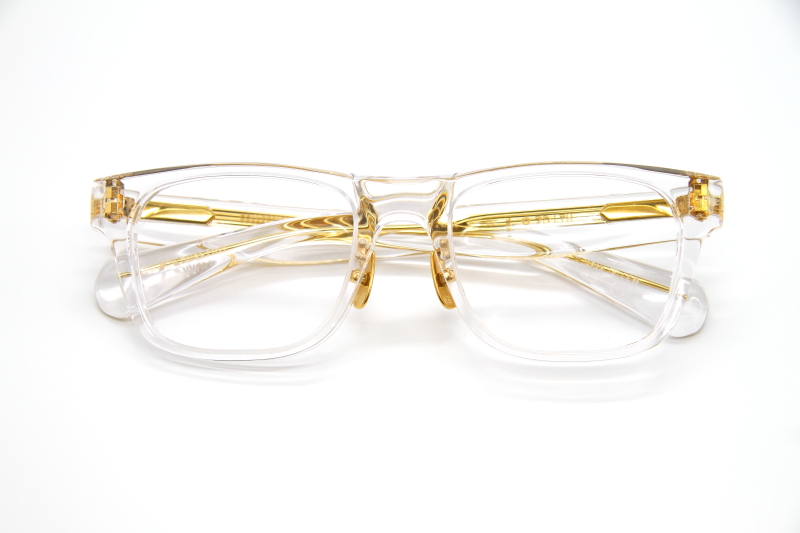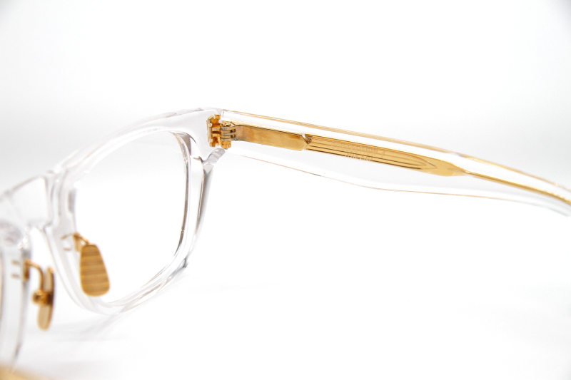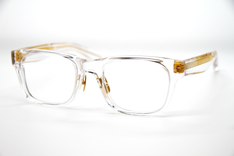 ウェリントン型のプラスチックフレーム。 美しく流麗なブローラインが特徴的で、 王道のスタイルよりは、モード性の高いデザイン。 テンプルの芯が見える仕様でリッチな雰囲気。