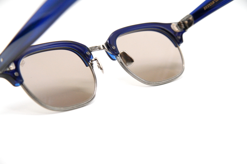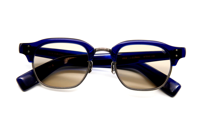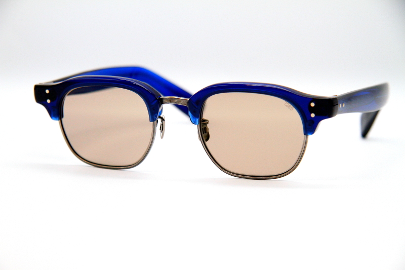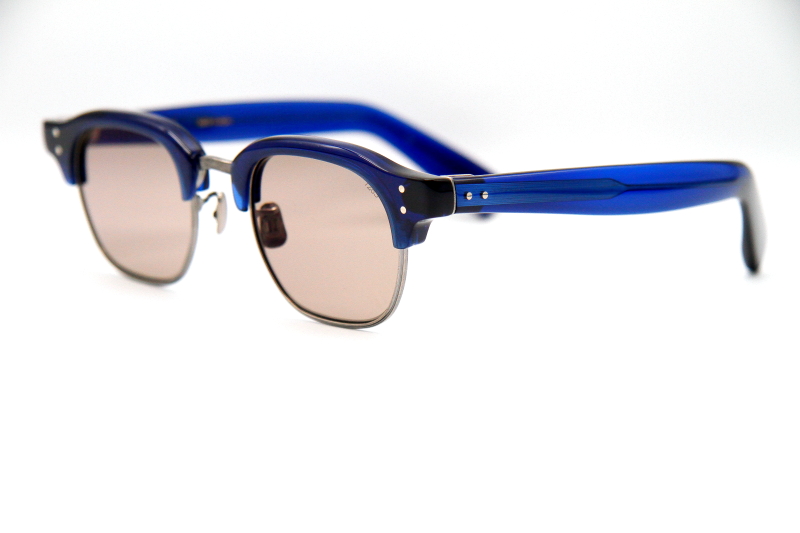 スクウェアタイプのサーモントブロー。 太めのテンプルでボリューム感があり 智が落ちたブローラインが特徴的。 クラシカルなサイズ感のフレームで 顔に収まりがよく雰囲気のある眼鏡。