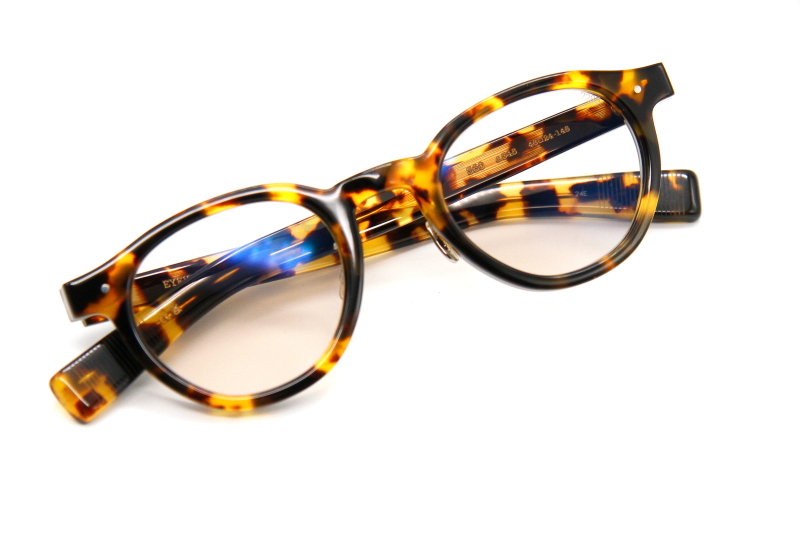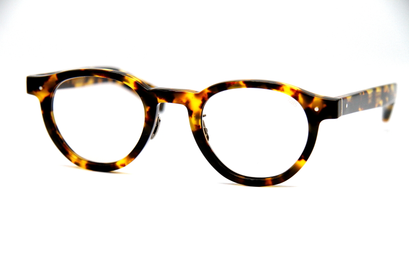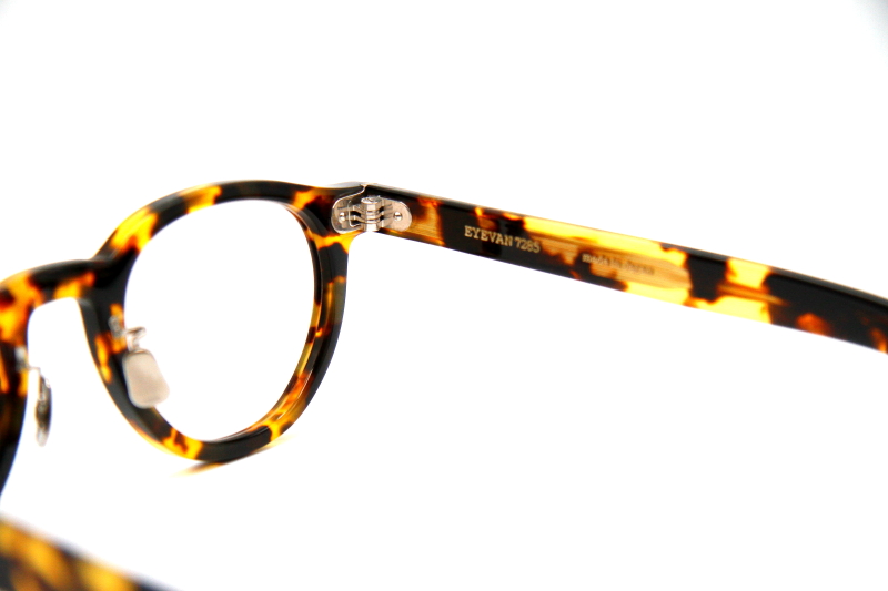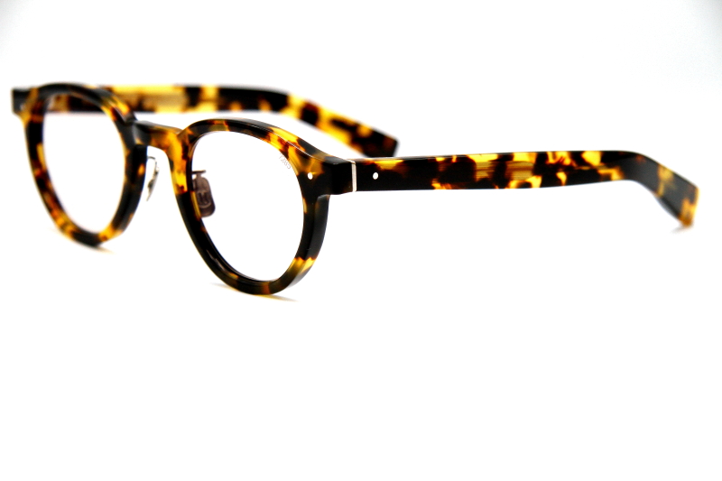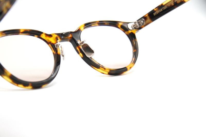 ボストンタイプのプラスチックフレーム。 フロント上部のラインどりが微かに丸くなく 通常のボストンタイプとは違った印象のフレーム。 1pinのカシメとメタルパーツを合口部分に使い シンプルなデザインに7285らしい上質な雰囲気。