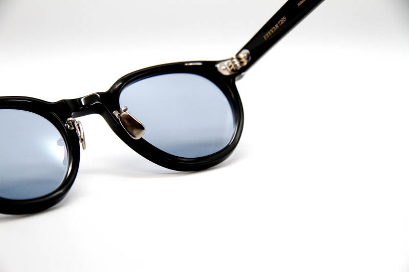 ボストンタイプのプラスチックフレーム。 フロント上部のラインどりが微かに丸くなく 通常のボストンタイプとは違った印象のフレーム。 1pinのカシメとメタルパーツを合口部分に使い シンプルなデザインに7285らしい上質な雰囲気。