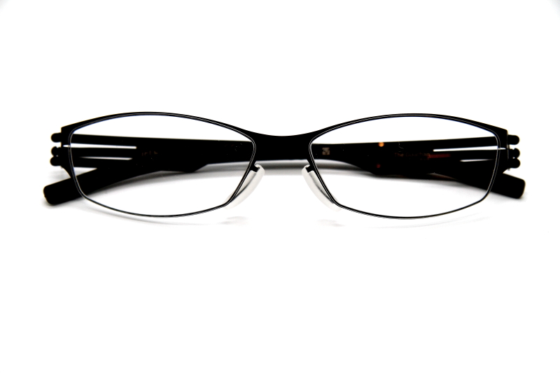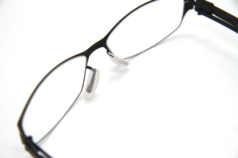 縦幅を抑えたピーナッツ型のレンズシェイプに 太めのテンプルをセット。 前枠のインパクトが少なく眼鏡の存在感は薄めですが、 顔の印象を引き締める効果のあるデザイン。