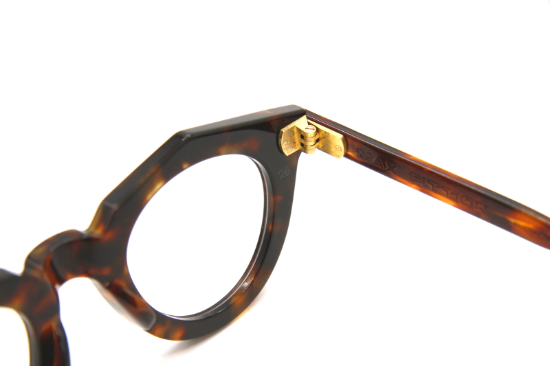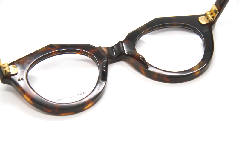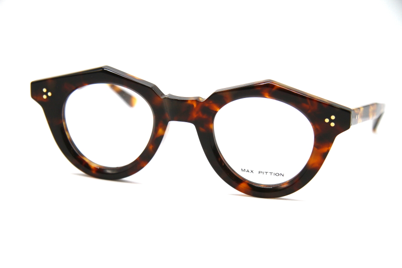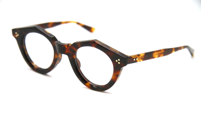 パント型プラスチックフレーム。 ピーク(山)のあるブローラインが特徴で クラウンパントとも違う独特のフォルム。 真鍮製のヒンジや、テンプル芯の美しい装飾が フレンチヴィンテージな雰囲気に ナチュラルなラグジュアリー感をプラス。 個性的なデザイン。