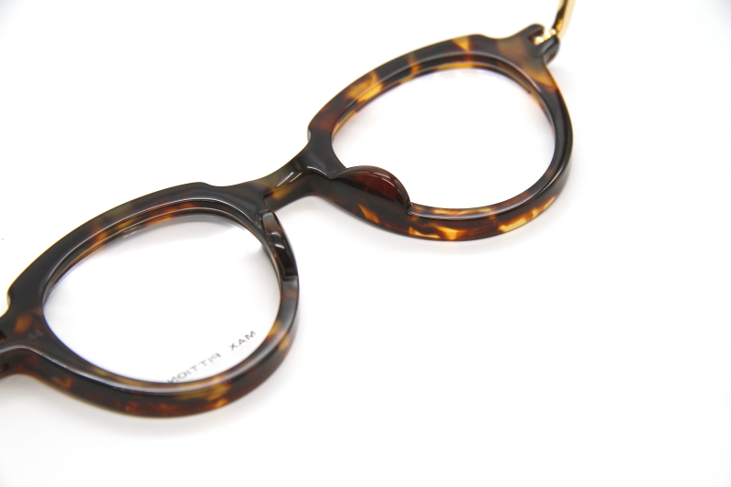 ボリューム感のある「MAX PITTION」の中では珍しい リムが細めのボストン型コンビネーションフレーム。 フロントは、レンズ周辺にカッティングを入れ立体的をプラス。 智の部分の張り出しやフロント上部のデザインが特徴的。 チタン製のメタルパーツがテンプル中腹まで施され 高級感を醸し出しています。 独特の存在感とリッチな雰囲気は、M.Pならでは。