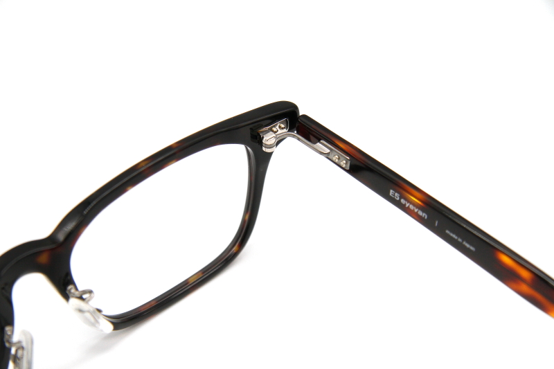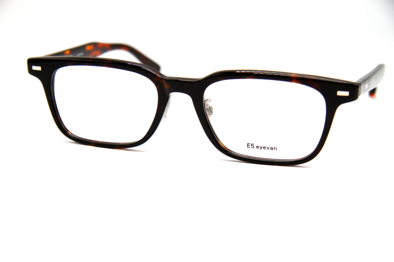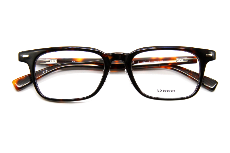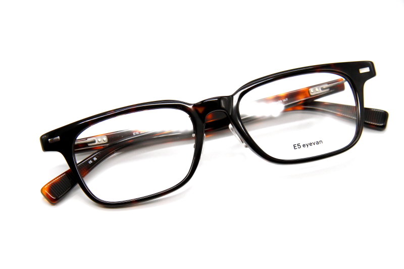 細身のリムのスクウェアウェリントンスタイル。 大振りなレンズサイズが、良い抜け感を演出して シャープになりすぎづスマートな雰囲気。 E5特有のL字型のヒンジや高密度プラスチックで 軽量で下がりづらく快適な掛け心地。