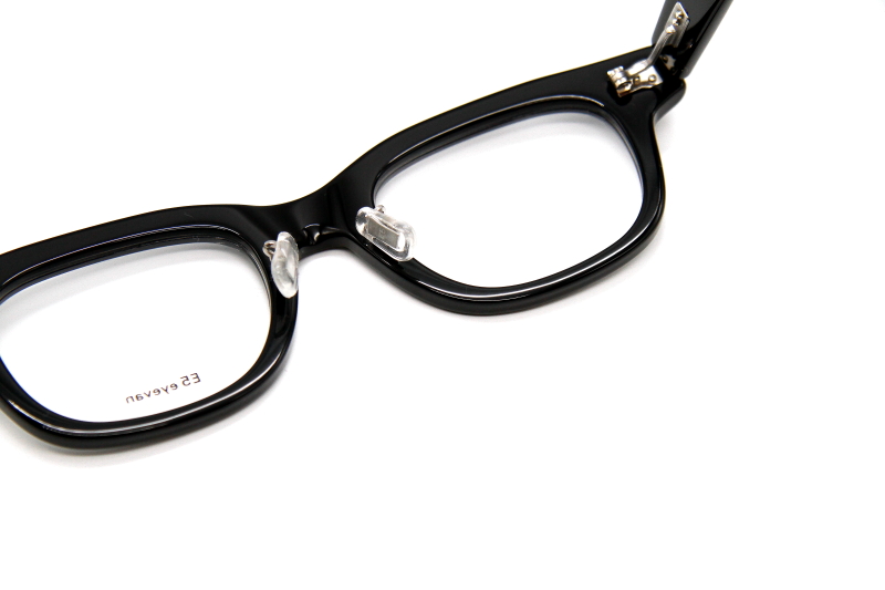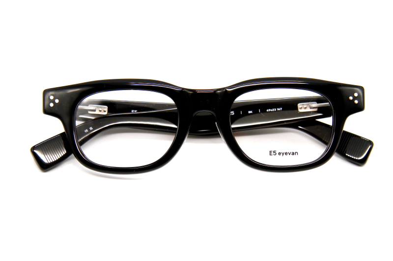 スクウェア型のウェリントンスタイル。 多くのビジネスマンに愛用されてきた フレームデザインで、テンプルの太さや キリリとしたブローラインは大人な雰囲気。 E5特有のL字型のヒンジや高密度プラスチックで 軽量で下がりづらく快適な掛け心地。