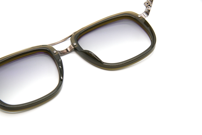 ツーブリッジのコンビネーションサングラス。 70年代のジャーマンビンテージな雰囲気で セル部分の立体感と重厚な雰囲気がリアル。 レンズカラーによって印象が変わるので 多くのアレンジが可能なムードのあるサングラス。