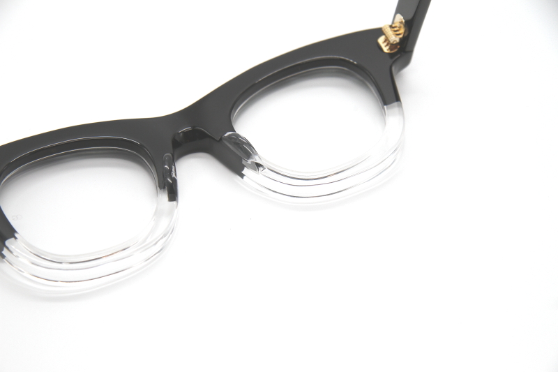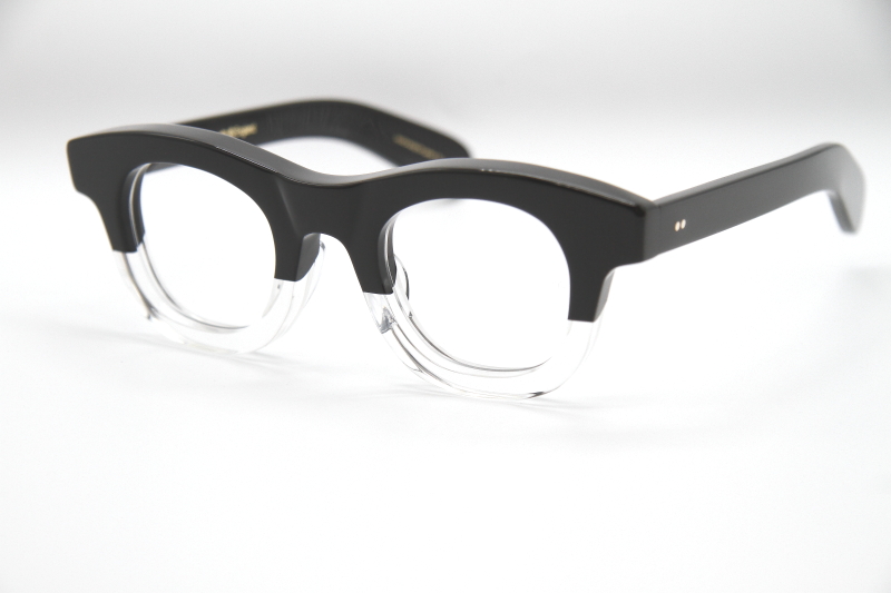 ウェリントン型のプラスチックフレーム。 ウェリントンの代名詞となる 『CONSUL』へとつながるモデルで 2代目のデザイン画から復刻させたフレーム。 リム幅がしっかりとしたボリューム感のあるデザインで フレンチヴィンテージとも少し違う少し個性的な表情。