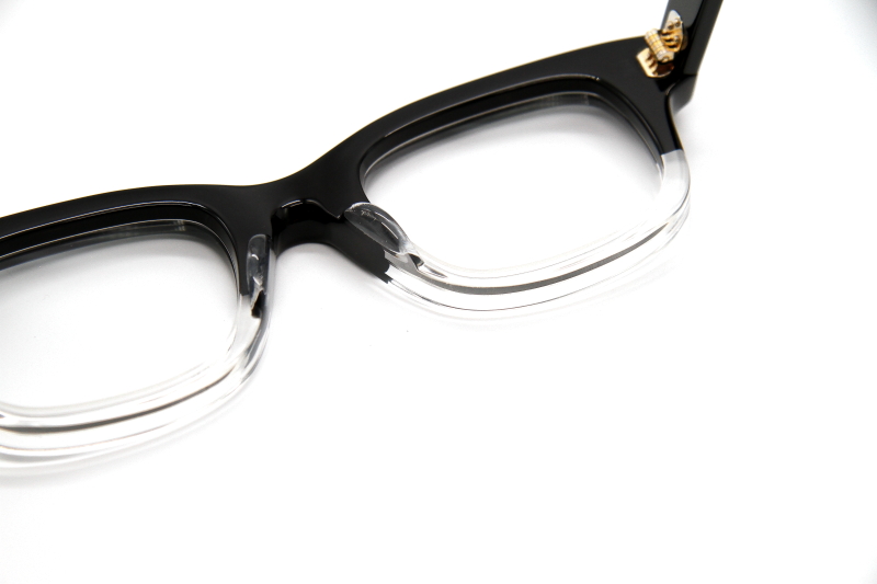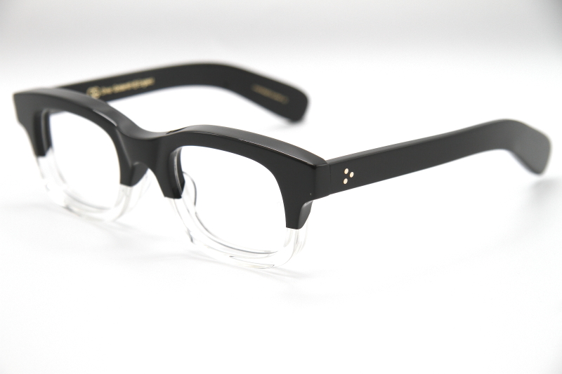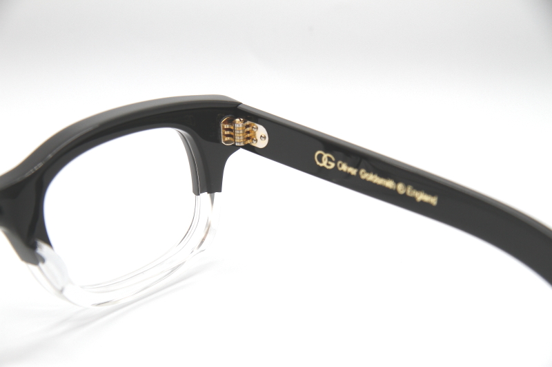 縦幅を抑えたスクウェアウェリントン型 OLIVER GOLDSMITH の代表作 『VICE CONSUL』へとつながるモデルで 2代目のデザイン画から復刻させたフレーム。 リム幅がしっかりとしたボリューム感のあるデザインで フレンチヴィンテージとも少し違う少し個性的な表情。