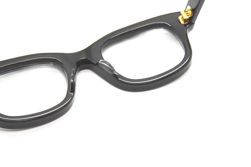 縦幅を抑えたスクウェアウェリントン型 OLIVER GOLDSMITH の代表作 『VICE CONSUL』へとつながるモデルで 2代目のデザイン画から復刻させたフレーム。 リム幅がしっかりとしたボリューム感のあるデザインで フレンチヴィンテージとも少し違う少し個性的な表情。