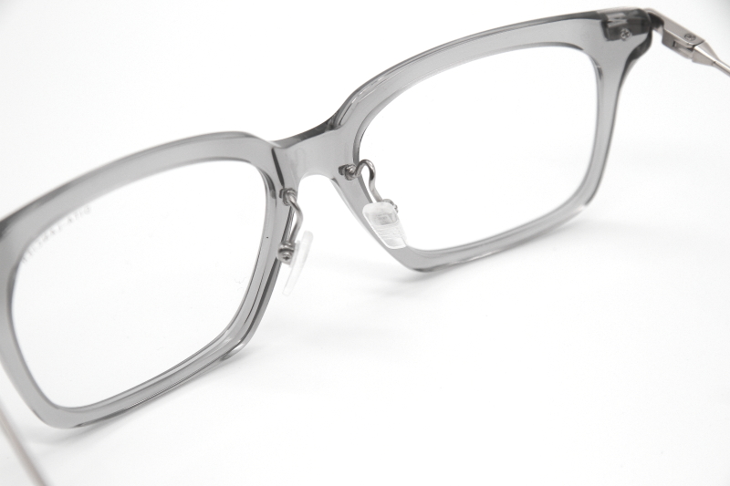 ウェリントン型のコンビネーションフレーム。 プラスチックフロントにチタン製のテンプルをセット。 天地の深いラグジュアリーな雰囲気のフロントマスクは DITAらしいデザインでフレキシブルなテンプルで 掛け心地も軽い。
