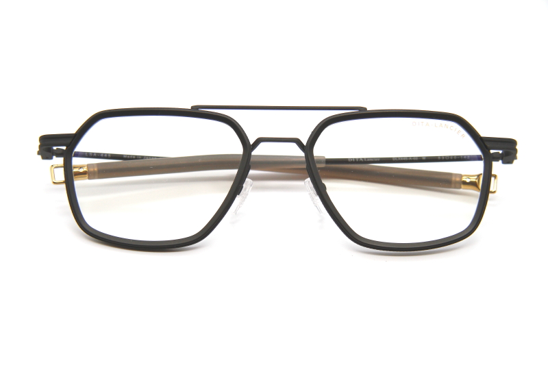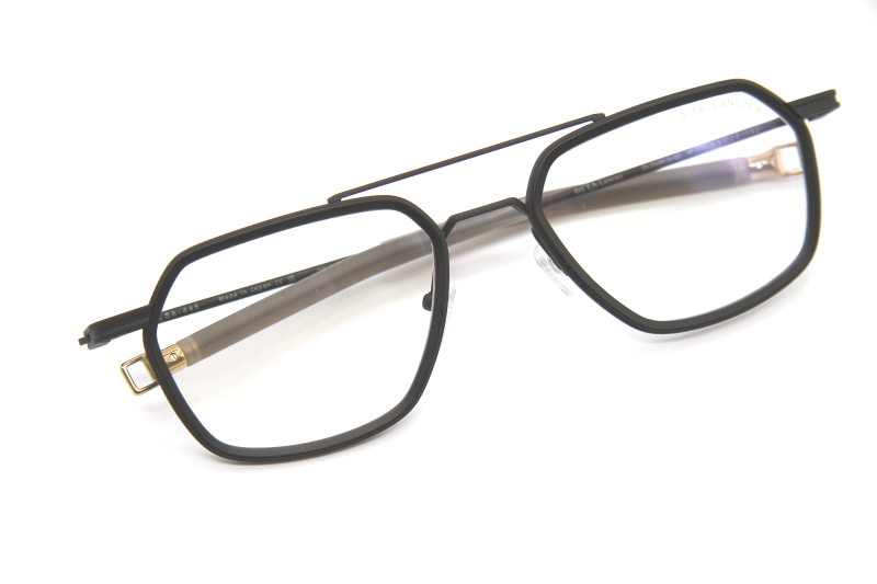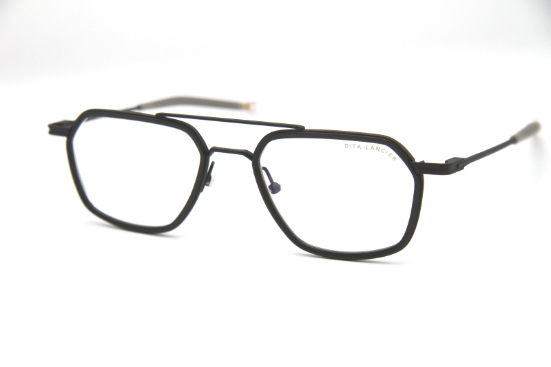 2ブリッジのコンビネーションフレーム。 チタン製のメタルリムにプラスチックリムをセットし DITAらしいナビゲーター型に仕上げたフレーム。 テンプルにはスリップしにくいチップを使用し スポーティーな雰囲気。 カラーレンズや調光レンズにカスタムすると 使い勝手が良いメガネフレーム。