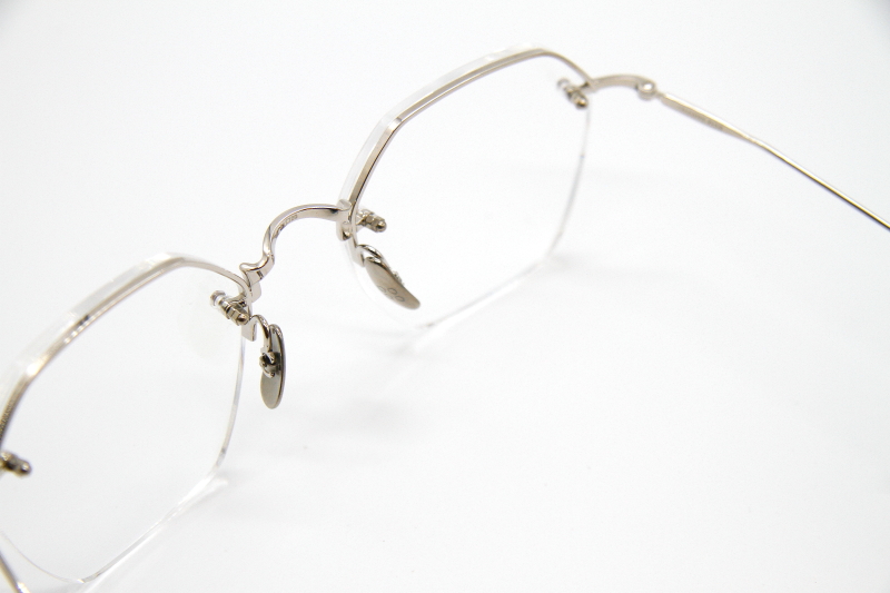 天地幅の深いヘキサゴン型リムレスフレーム。 レンズシェイプに沿うように施された チタン製のガイドリム構造が強度性とデザイン性を向上。 クラシカルなデザインをモダンな表情へと昇華させた Yellows Plusらしいフレーム。