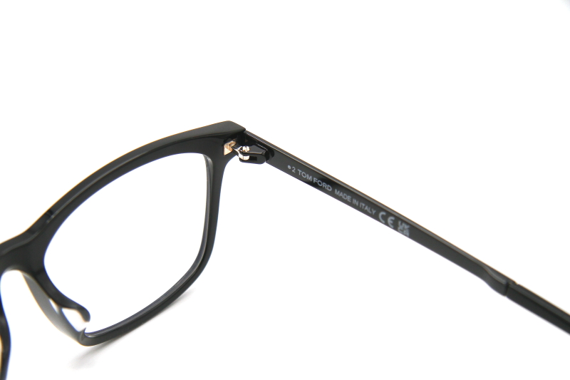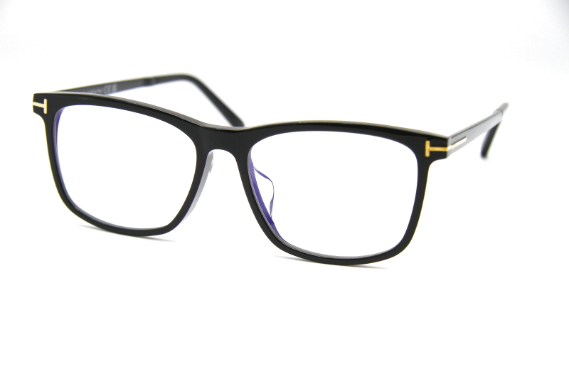ウェリントン型のコンビネーションフレーム。 細いリムのプラスチックフレームに メタルのテンプルをセット。 全体的にブラックアウトされたフレームに ゴールドのTマークが映えるスタイリッシュな印象のデザイン。