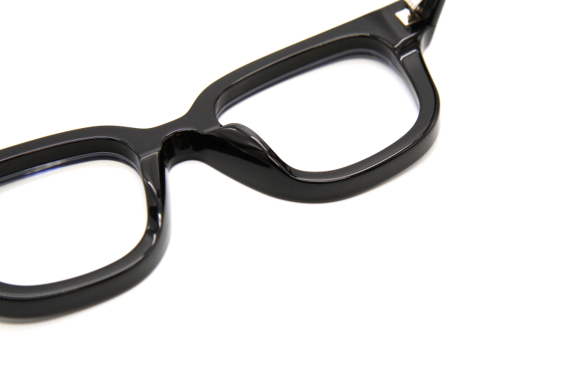 ウェリントンタイプのプラスチックフレーム。 厚みのある生地で制作された奥行き感のある デザインが特徴的。 シンプルながら存在感のある眼鏡。