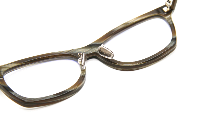 縦幅を抑えたキャットアイ型。 眉に添ってゆっくりと吊り上がった ブローラインがナチュラルでエレガント。 女性はもちろん顔の小さめの男性や 強度度数の方にもおすすめのフレーム。
