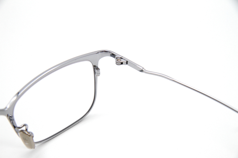 ウェリントン型のメタルフレーム。 上下、裏表とメッキを変え細身ながら 顔にアクセントを与えてくれる眼鏡。 メタルフレーム特有のシャープな雰囲気とは違い 曲智と呼ばれる丸みのある智の部分から 流れるような曲線でテンプルをデザイン。 レクタングルシェイプをミックスしたような 玉型と相まってエレガントな雰囲気。 ビジネス向きなフレーム。