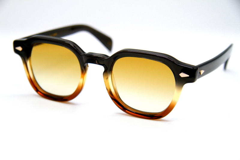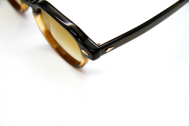 少し智の落ちたデザインの ウェリントン型のプラスチックフレーム。 肉厚なイタリア製アセテート生地を使用。 キーホールブリッジや特徴あるパドルテンプル 7枚丁番にダイヤモンド型のリベットなど ヴィンテージな雰囲気。 ゆったりしたサイズ感で男女ともに掛けやすいモデル。 ※46,49の2サイズ展開です。