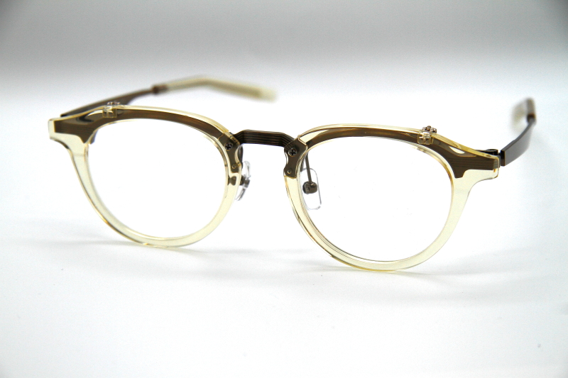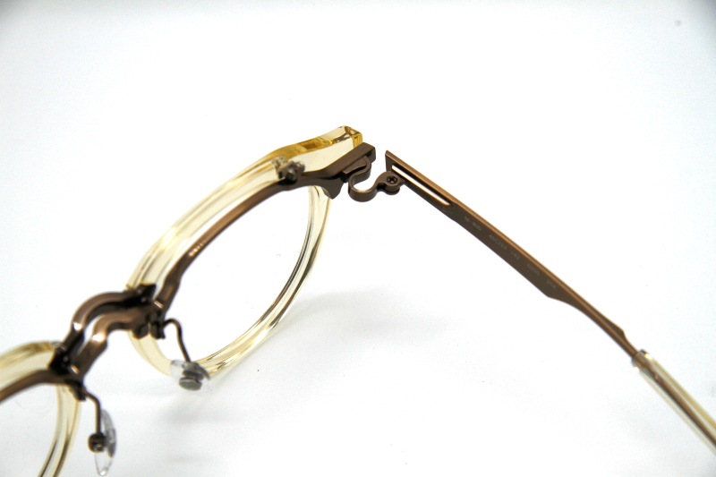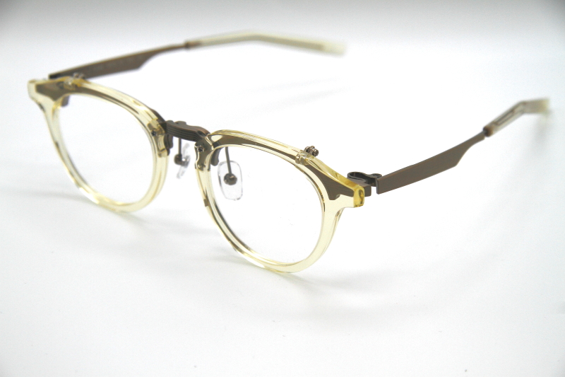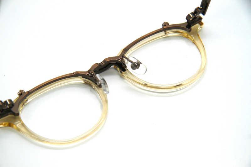 クラウンパント型の跳ね上げ式フレーム。 フロントのリムが細く、 メタルテンプルとの組み合わせで 軽量な掛け心地感とスッキリした見た目を演出。 多くの方に掛けやすいデザイン。