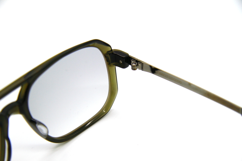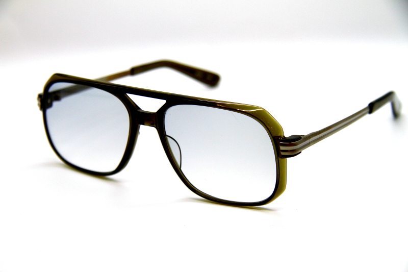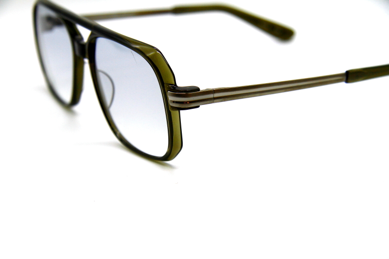 ダブルブリッジのコンビネーションサングラス。 70年代のジャーマンデザインを想起させる フレームデザインで、大ぶりなサイズ感が特徴的。 アセテートインジェクション製法のフロント枠は、 サイズ感のわりに軽く堅牢。 幅広なチタンテンプルが、美しい見た目と 軽い掛け心地に繋がっています。