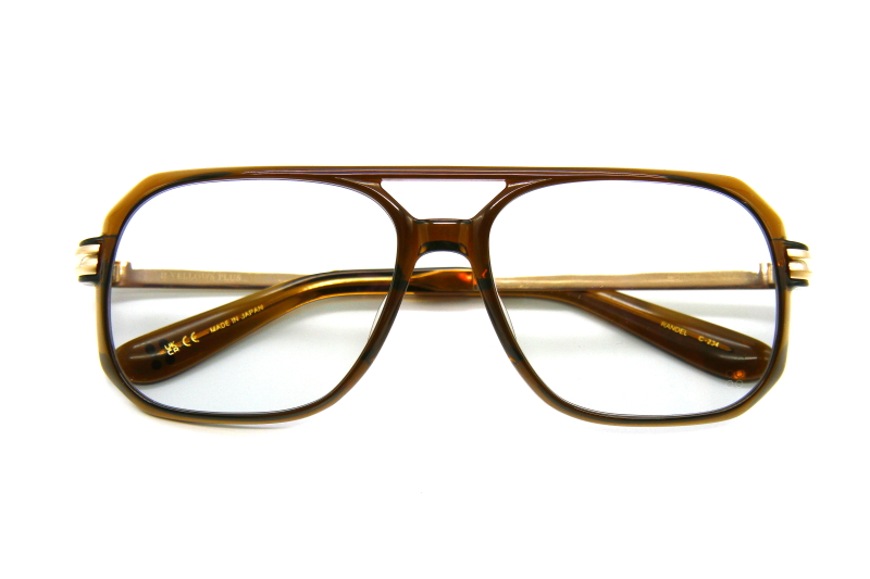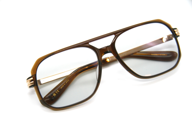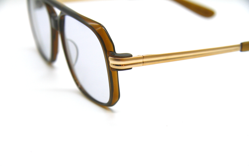 ダブルブリッジのコンビネーションサングラス。 70年代のジャーマンデザインを想起させる フレームデザインで、大ぶりなサイズ感が特徴的。 アセテートインジェクション製法のフロント枠は、 サイズ感のわりに軽く堅牢。 幅広なチタンテンプルが、美しい見た目と 軽い掛け心地に繋がっています。
