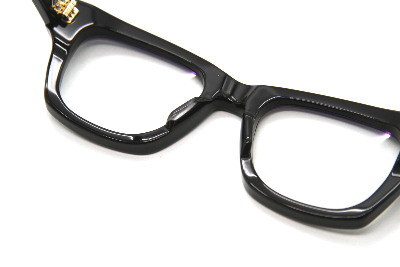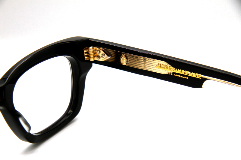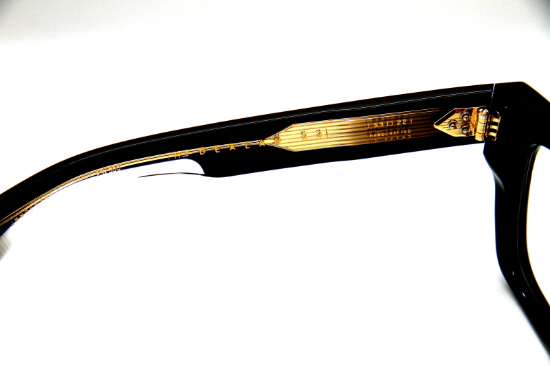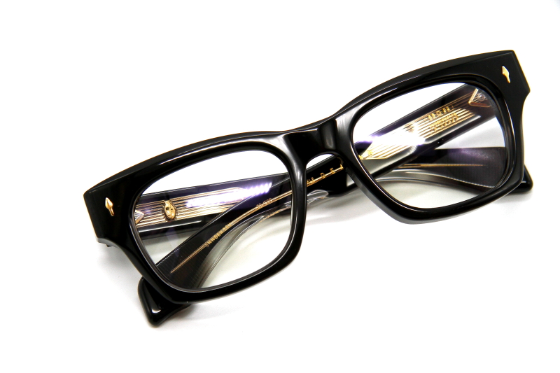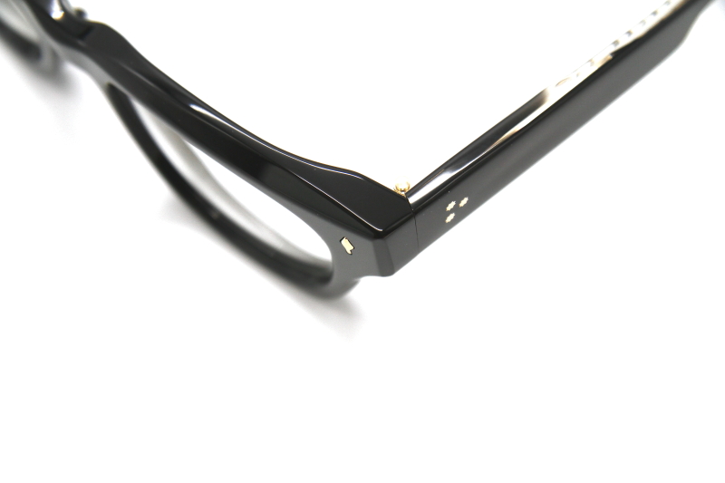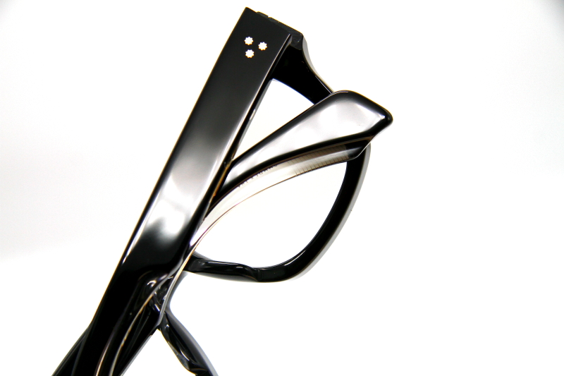 Bob Dylan(ボブ・デュラン)が着用していた物から インスピレーションを得てデザインされたフレーム。 10ミリ厚のプラスチック生地から削り出し 職人の手によって丁寧に磨き上げられたボディーには 矢じり型のスターリングシルバーと拍車型のリベットの 装飾が施されています。 フロントはブラック テンプルも同じ生地で内側からゴールドのコアワイーが見える仕様。 ※レギュラーサイズよりもレンズサイズが3㎜ ブリッジサイズが1㎜大きくなります。