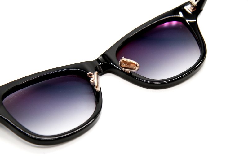 キャットアイ型のサングラスフレーム。 吊り上がり方が優しく、リムの太さや サイズ感が絶妙でジェンダレスなデザイン。