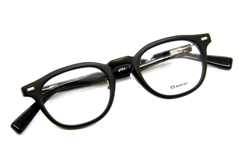 ボスリントン型のプラスチックフレーム。 軽量で変質の少ない圧縮プラスチックと L字型の丁番やシリコンパットで快適な掛け心地。 リムが細く顔なじみの良いデザイン。