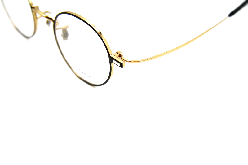 ラウンド型のメタルフレーム。 フロントには、軽量で強度性に優れた シートメタルを使用。Ⅼ字型の特殊形状で 顔を包み込むメタルテンプルは、 ズレにくさと軽い掛け心地感を実現。 日常使いしやすいフレーム。