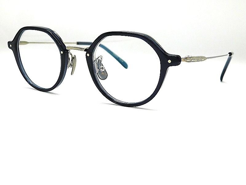 クラウンパント型のコンビネーションフレーム。 リムが細く軽量で掛けやすい眼鏡。 レンズサイズが小さめで顔が小さめの方や 度数が強めの方にも安心なサイズ感。 チタン素材を使用したバックリム構造で強度性も抜群。