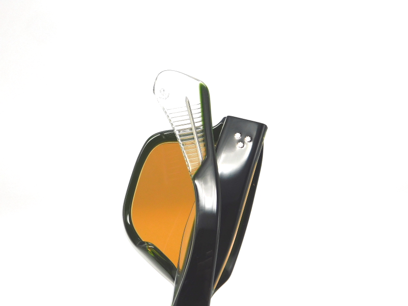 イタリアの映画監督フェデリコ・フェリーニに オマージュを捧げたフレーム。 10ミリ厚のプラスチック生地から削り出し 職人の手によって磨き上げられたボディーには 矢じり型のスターリングシルバーと拍車のリベットの 装飾が施されています。