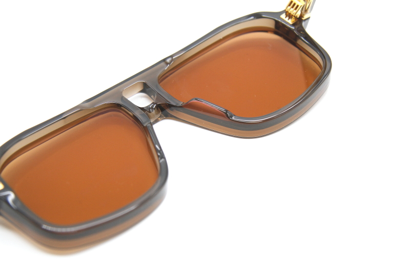 ポールニューマン主演の映画『レーサー』の撮影地 エルクハート・レイクがモデル名の由来。 2ブリッジのアヴィエータ型サングラスで重厚感のあるモデル。 フロントからテンプルに向かってアロー型の装飾が入り 内側のコアワイヤーと相まって芸術的でラグジュアリーな雰囲気。