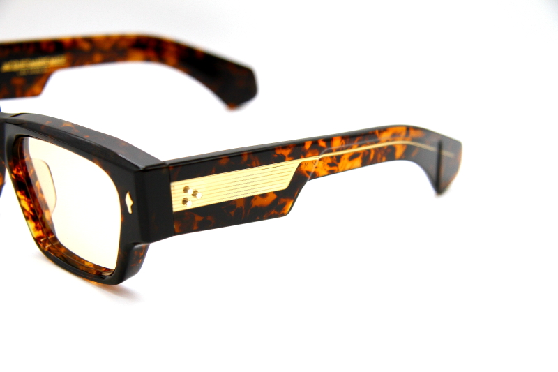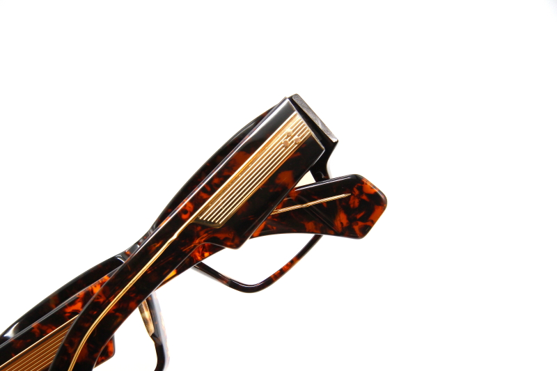 テンプルの外側からゴールドのコアワイヤーが見える仕様。