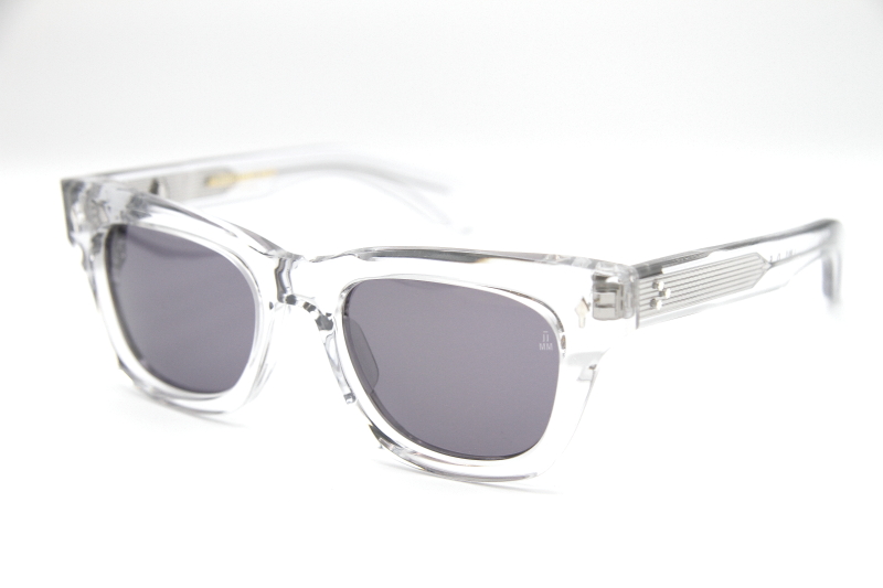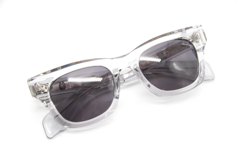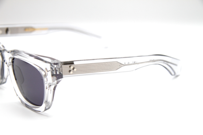 フロント、テンプルともにグレーがかったクリア生地 テンプル外側からシルバーのコアワイアーが見える仕様。