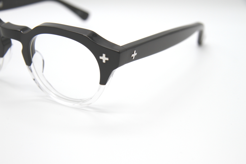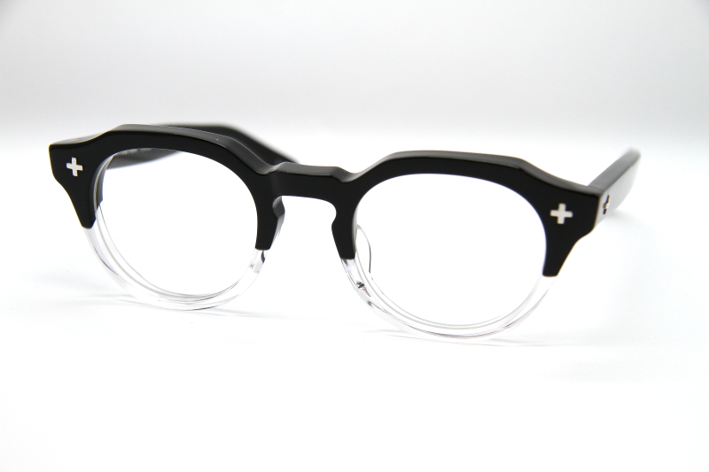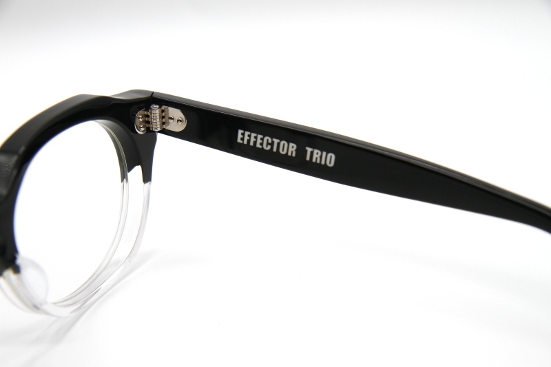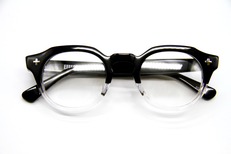 クロスモチーフが目を引くクラウンパント型の プラスチックフレーム。6ミリ厚の生地で制作され 無骨な雰囲気の多い「EFFECTOR」としては、 ややおとなし目でニュートラルなデザイン。 掛け幅も広めでフレンチヴィンテージを 気軽に楽しめるモデル。