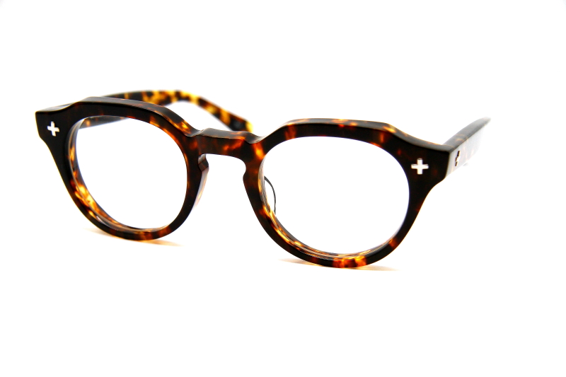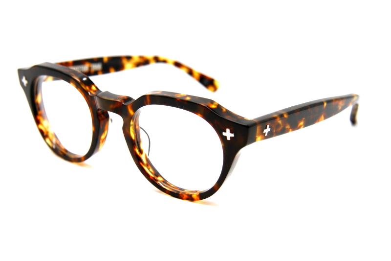 クロスモチーフが目を引くクラウンパント型の プラスチックフレーム。6ミリ厚の生地で制作され 無骨な雰囲気の多い「EFFECTOR」としては、 ややおとなし目でニュートラルなデザイン。 掛け幅も広めでフレンチヴィンテージを 気軽に楽しめるモデル。