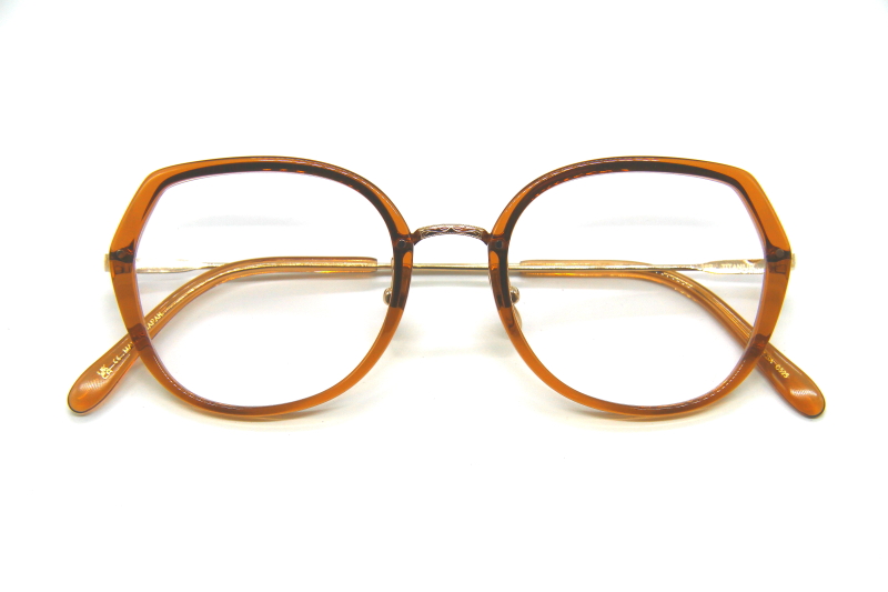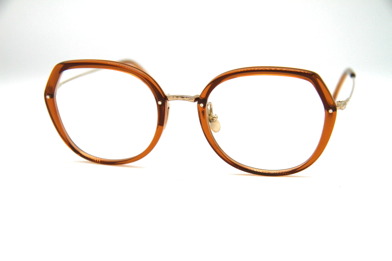 オーバーサイジングなバタフライ型。 個性的なデザインも細めのリムで 顔なじみが良く上品な雰囲気。 女性の方に掛けやすいフレーム。
