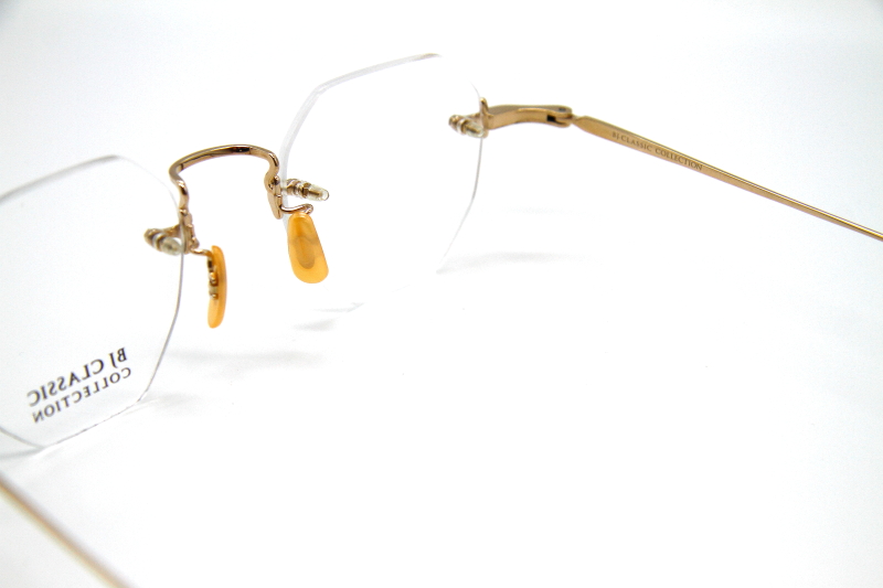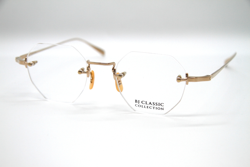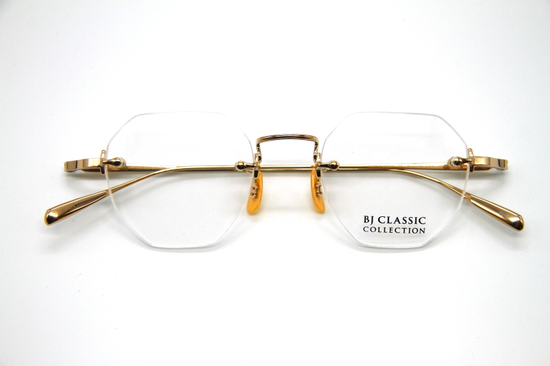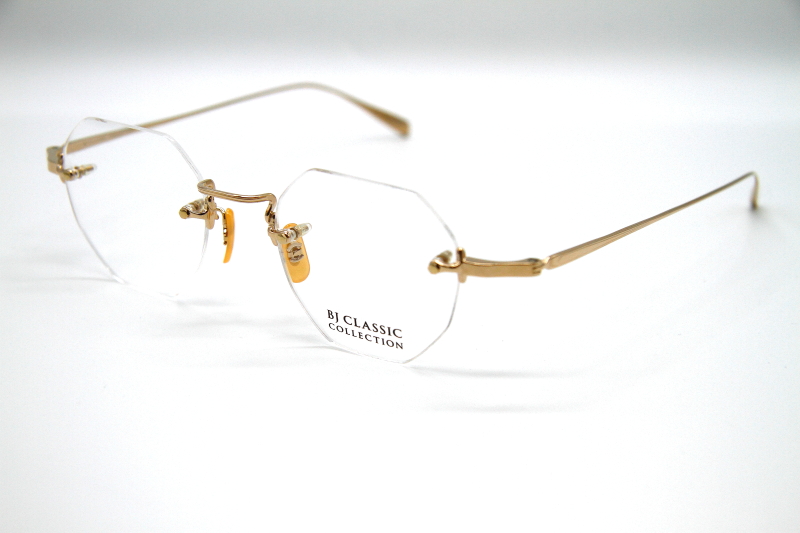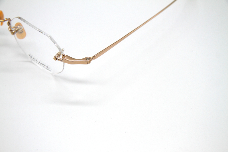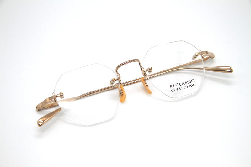 オクタゴン型のリムレスフレーム。 シンプルな3ピース構造で、チタンパーツに 施された装飾もおとなし目の印象。 ビジネスユースはもちろんのこと カラーレンズを入れると雰囲気が変わり モードなスタイルでも合わせやすく コーディネートの幅が広がる。