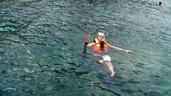 この島では、しばらく海水浴。 この海は、ほんとに青くてとても綺麗な海です。![]()