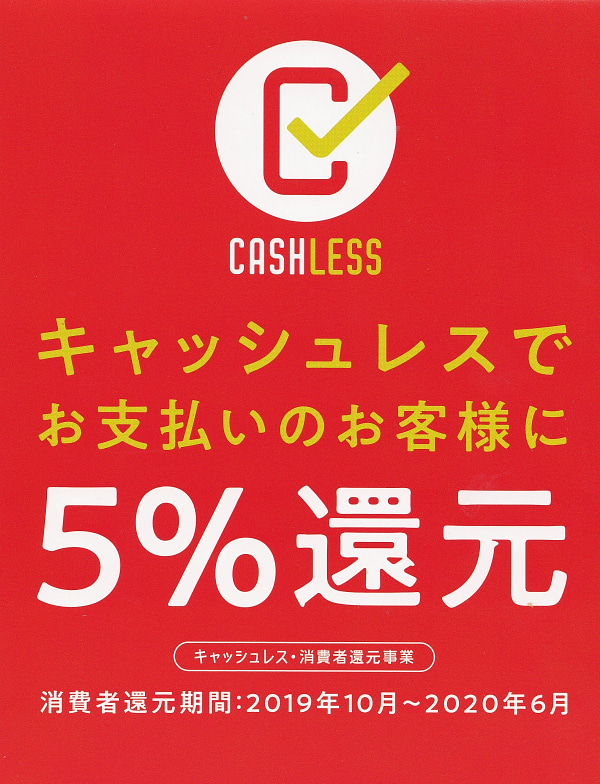 当店は、キャシュレス・消費税還元事業の対象店舗です。