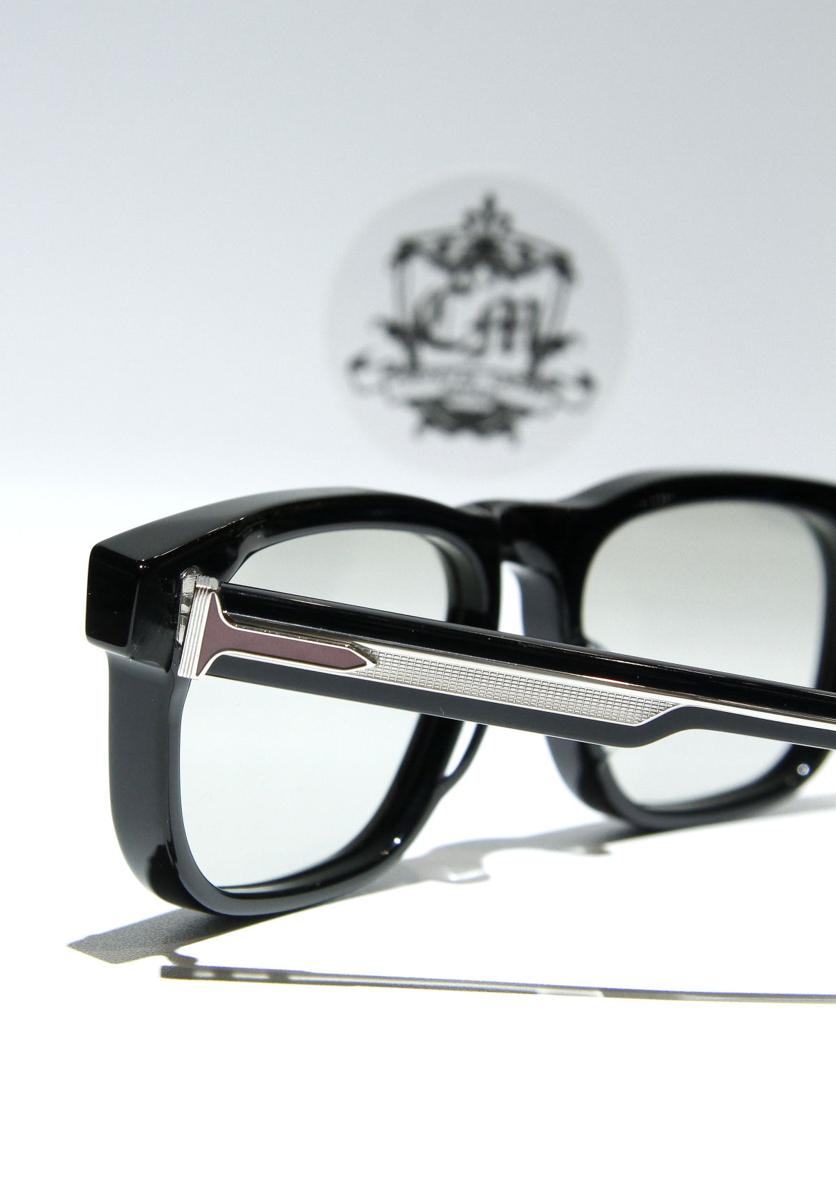 テンプルには、手描きのエポキシインレイを施した